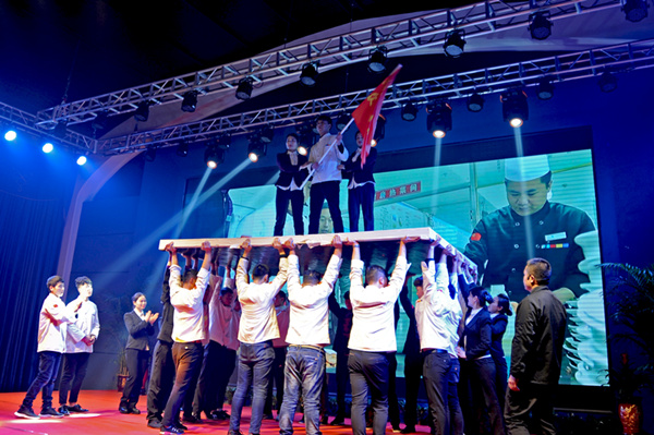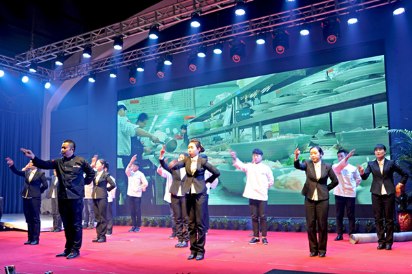 迪尼斯酒店開元店表演的團隊風采《眾志成城·從頭再來》是公司員工紀律、業(yè)務、才藝、禮儀與團隊精神的綜合展示,獲得二等獎,獎勵2000元;